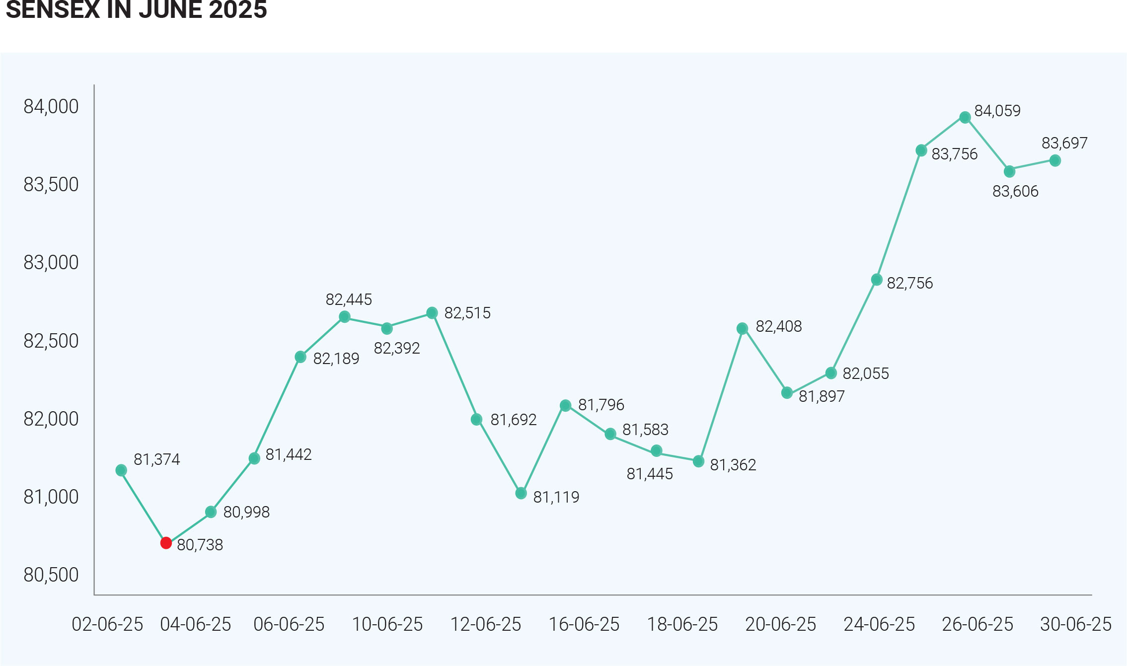 IT stocks, including bluechips suffered the most as fears of soft global tech demand took hold, and the Sensex slumped to an intraday low of 81,476.76 on June 23, while the Nifty dipped to 24,824.85. However, the markets staged a remarkable turnaround following a mid-month ceasefire announcement between Iran and Israel, which dramatically improved risk sentiment and reignited optimism. This geopolitical easing, coupled with falling crude oil prices and a weakening U.S. dollar, made Indian equities attractive again to foreign investors, sparking renewed Foreign Institutional Investor (FII) inflows that fuelled a powerful second-half rally. The Sensex rebounded 700 points on June 25 to close at 82,756, while the Nifty crossed the 25,200 mark for the first time in 2025. For sector performance, the rally was led by private financials, PSU banks, infrastructure, IT, and defence-linked stocks, with midcap and smallcap segments outperforming large caps. The Nifty Smallcap 100 index surged 6.66%, reflecting the market’s growing appetite for high-risk, high-reward investments. This shift in risk appetite also indicated a broad-based rally driven by strong domestic retail participation, mutual fund SIP inflows, and a sustained bull run in broader markets. Notably, defence and shipbuilding stocks rallied strongly due to increased government spending and a clear policy push, while sectors like FMCG and Realty lagged as investors rotated out of defensive plays into growth sectors. However, despite the upbeat mood, the month was not without headwinds. A surge in equity supply through IPOs and large block deals in the second half of June tested market liquidity, absorbing investor funds and leading to intermittent consolidation and profit booking, especially in overbought counters. The final trading session on June 30 saw mild correction: the Sensex dropped 452 points to close at 83,606.46 and the Nifty lost 120 points to end at 25,517.05, snapping a four-day rally. Still, broader indices like the BSE Midcap and Smallcap held firm, reflecting continued confidence in India’s long-term growth story. The rotation out of defensive sectors was largely strategic—FMCG, for example, underperformed due to persistent margin pressures and concerns over volume growth, particularly in rural markets. Meanwhile, Auto and PSU banks enjoyed renewed investor interest on the back of robust credit growth, improved NPAs, and strong policy support. Retail investor participation remained high despite foreign volatility, helping absorb FII outflows in early June and providing stability to the market during its more volatile phases. From a macroeconomic perspective, the Indian economy remained resilient with stable inflation, upbeat industrial production numbers, and healthy credit growth—especially in retail and MSME segments—underpinning investor optimism. Additionally, positive developments such as USFDA approvals in the pharma space and robust quarterly updates from select companies gave a further boost to individual stocks and sectoral indices. Technically, the markets displayed a classic recovery, with sentiment swinging from bearishness in the first half of June to a renewed bull run in the latter part, driven by easing geopolitical risks and improving global macro indicators. Notably, foreign flows turned positive after June 20, with sustained buying in banks, energy, and infrastructure counters. As the month ended, investors were left balancing optimism with caution. On one hand, domestic fundamentals, liquidity, and earnings resilience provided a strong foundation; on the other, the rush of IPOs, the possibility of global rate actions, and ongoing geopolitical fragility posed potential risks. For investors, June was a reminder that markets are no longer just indicators of economic performance—they are real-time barometers of sentiment, reacting swiftly to headlines, policy shifts, and capital flows. Sector rotation was another key theme, with the market moving decisively from defensives like FMCG into cyclical and policy-driven sectors such as infrastructure, public sector enterprises, and defence, reflecting confidence in India's capital expenditure cycle and fiscal discipline. In conclusion, June 2025 showcased the complexity and resilience of Indian equity markets. It was a month marked by sharp corrections and equally sharp recoveries, by cautious optimism and bold sectoral bets. Despite initial volatility triggered by geopolitical unrest, the underlying strength of the domestic economy, combined with favourable global cues, drove a strong rally in the second half. With the Sensex and Nifty ending the month on a high note and broader indices outperforming, the market demonstrated its ability to absorb shocks, recalibrate quickly, and reward quality amid uncertainty. As the second half of the year begins, the key message for investors is to stay agile, keep quality at the core, and be prepared for episodic volatility—because the markets, as June 2025 proved, are sentiment machines first and foremost, finely tuned to every global whisper and domestic signal.