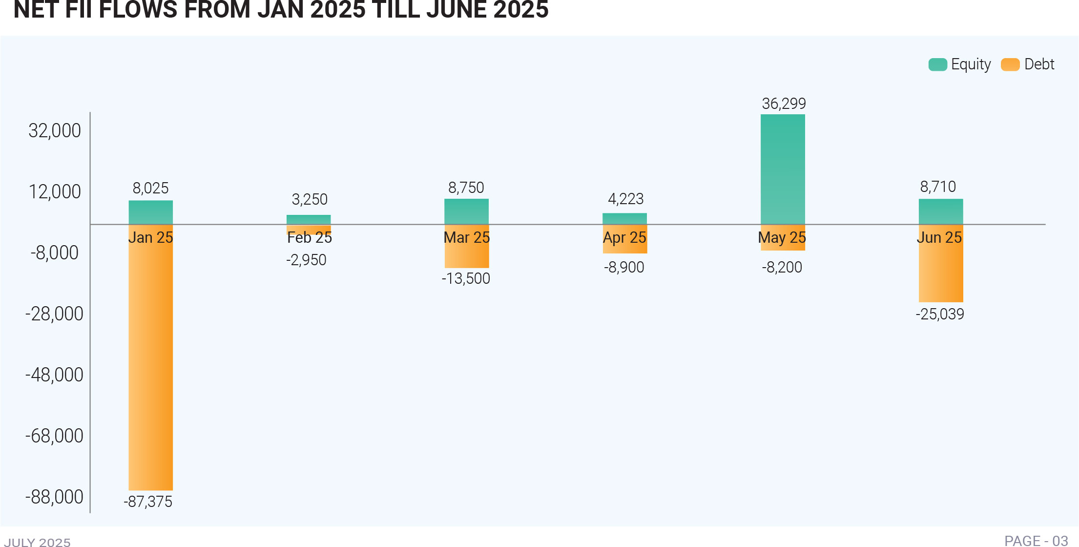 June 2025 proved to be a turbulent month for India’s debt markets, characterized by a sharp rise in bond yields, large-scale foreign portfolio outflows, and heightened investor caution. The benchmark 10-year government bond yield rose 11 basis points to 6.32%, marking its steepest monthly increase since April 2024. The 6.75% 2029 bond saw an even more dramatic 16 basis point surge, the largest in over two years. This broad-based bond sell-off was primarily triggered by the Reserve Bank of India’s unexpected policy move: while the RBI cut the repo rate by 50 basis points to support growth, it simultaneously shifted its stance from “accommodative” to “neutral.” This policy pivot surprised investors, who interpreted it as a signal that further rate cuts would be limited. As a result, the initial rally following the rate cut gave way to a sell-off, especially in long-duration bonds, leading to a bear steepening of the yield curve. Foreign investors, too, reacted sharply. FPIs withdrew ₹25,038 crore from Indian debt markets in June, reversing inflows from May. The sell-off spanned both the Fully Accessible Route (FAR) and the Voluntary Retention Route (VRR), highlighting a broad retreat from Indian fixed-income assets. A narrowing spread between Indian and U.S. bond yields—down to 204 basis points—diminished the relative attractiveness of Indian bonds, particularly when paired with a weakening rupee and rising currency risk. Globally, stronger-than-expected U.S. data and hawkish Fed commentary drove U.S. yields higher, compounding the pressure on Indian debt. Adding to market stress was a spike in Brent crude oil to $81.40 early in the month amid Middle East tensions, reviving inflation fears and dampening demand for Indian bonds. Domestically, risk appetite also cooled. While mutual funds and banks continued to participate in auctions, demand at state government bond auctions weakened, with some yields temporarily crossing 7%. Short-term yields held firm due to surplus liquidity and RBI support, but long-term yields climbed sharply, reflecting investor unease about inflation, fiscal health, and policy direction. Profit booking after earlier bond market gains further weighed on sentiment. On the corporate debt front, spreads widened, especially for lower-rated securities, as investors turned risk-averse. Demand shifted toward high-quality instruments, and issuance of certificates of deposit (CDs) surged as public sector banks managed liquidity needs, supported by mutual fund buying. The curve steepening indicated growing uncertainty regarding fiscal and monetary policies. Despite resilient domestic participation from banks, insurers, and mutual funds, the magnitude of FPI outflows and global headwinds overwhelmed the market. The month marked the steepest sell-off in over a year, not due to any deterioration in India's macro fundamentals—growth was stable and inflation contained—but rather due to a sudden shift in policy expectations and global repricing of risk. As June ended, the market faced a critical juncture. While India's economic outlook remains solid, elevated yields may persist due to external volatility, a firm U.S. dollar, oil price uncertainty, and diminished foreign appetite. The episode underscored the fragile balance debt markets must maintain amid unpredictable global and domestic crosscurrents.